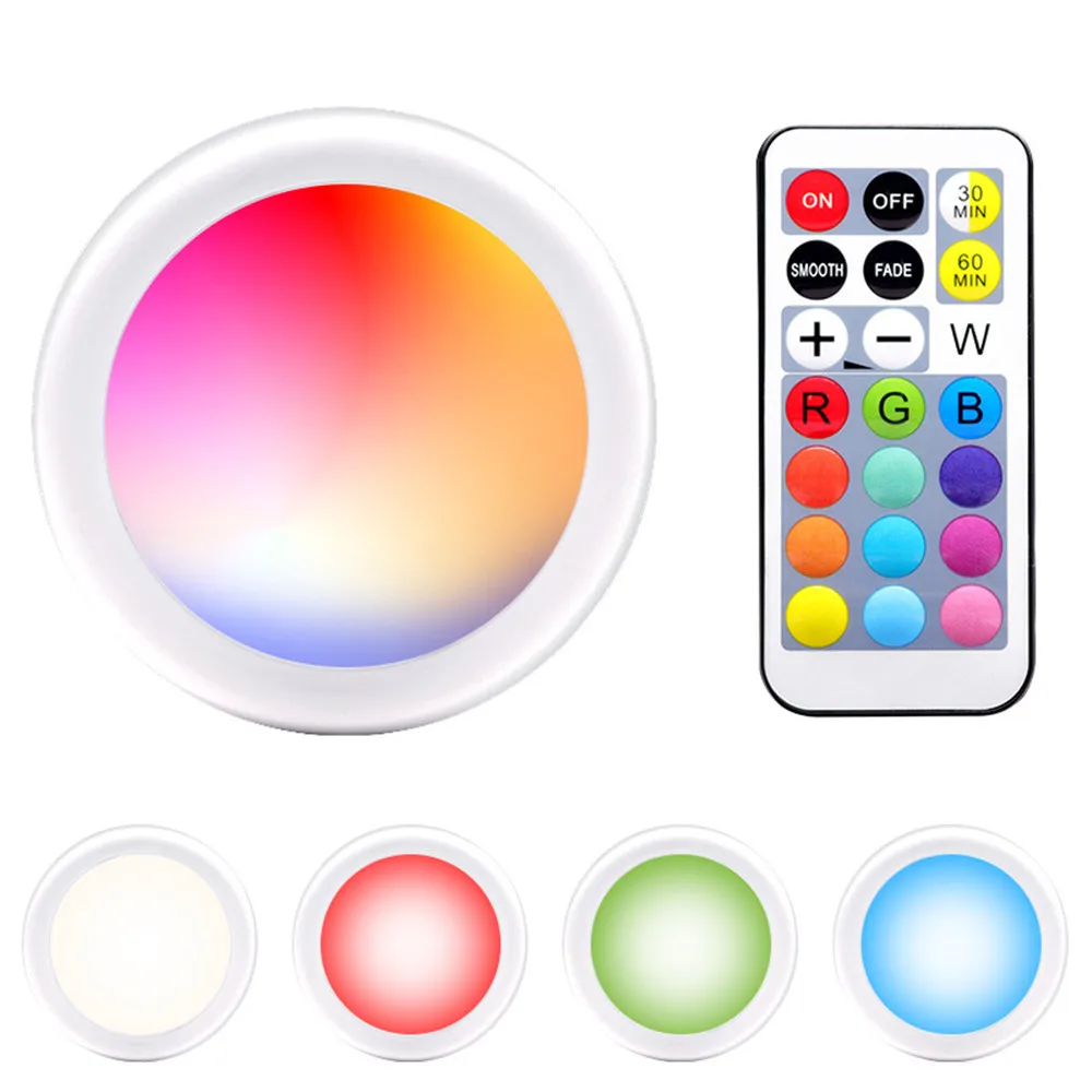 RGB LED Puck Lights – Wireless Remote Under Cabinet Lights (Dimmable, Battery Powered)