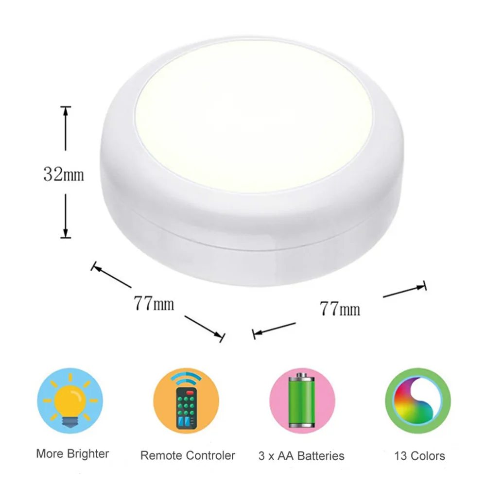 Light up your space instantly with these Wireless RGB LED Puck Lights – perfect for kitchens, wardrobes, and bedrooms.